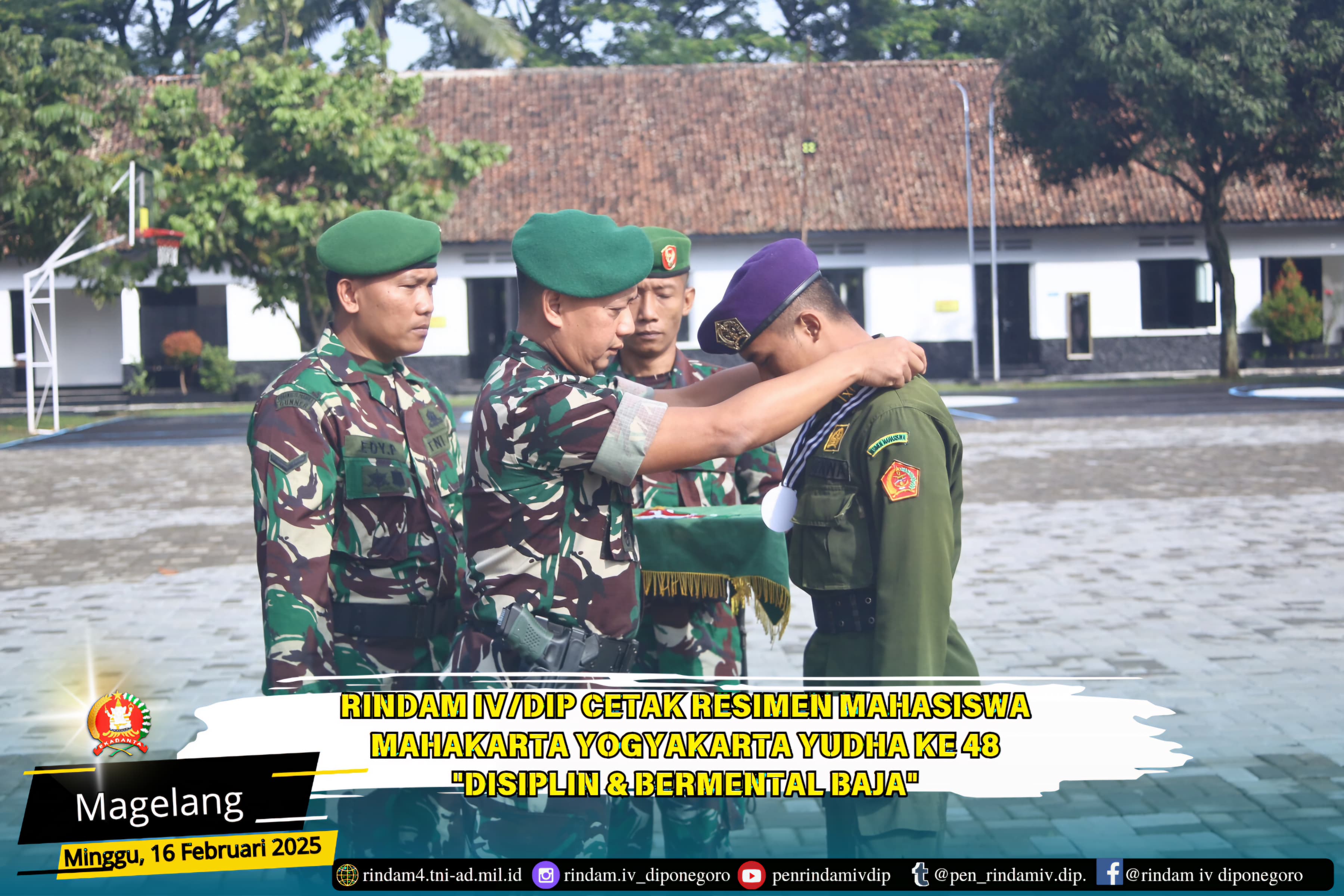 Rindam IV/Dip Cetak Resimen Mahasiswa Mahadipa Yudha ke 48 Tahun 2025 " Disiplin & Berkarakter Kebangsaan "